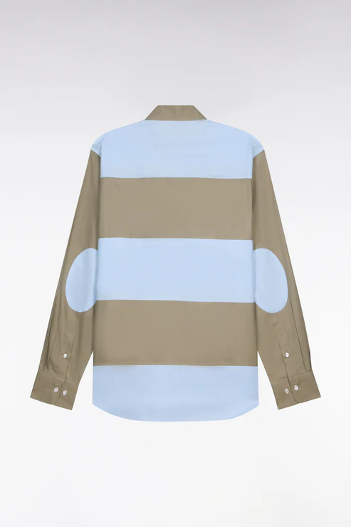 Chemise en coton à rayures rugby beige et ciel