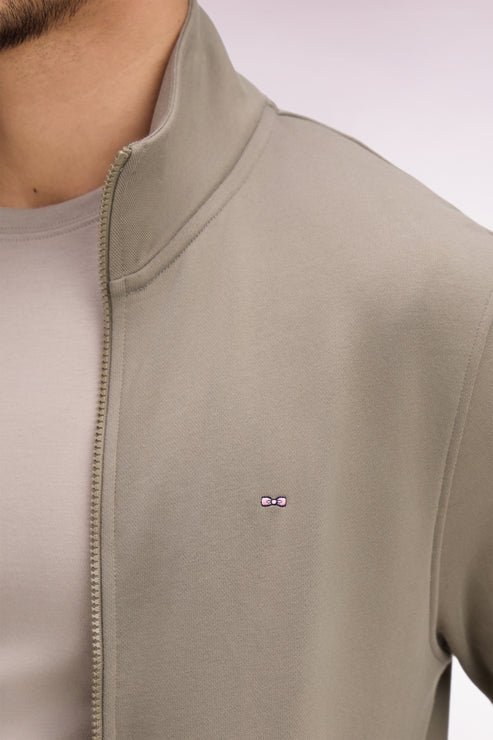 Sweatshirt zippé en molleton coton kaki