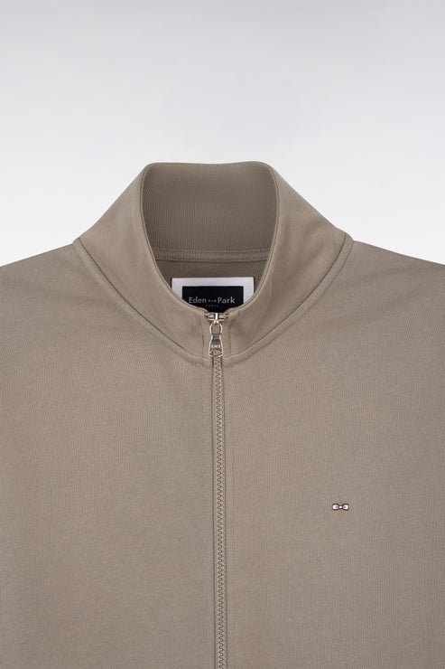 Sweat zippé pour homme de la marque Eden Park; modèle Cardi Basic kaki :